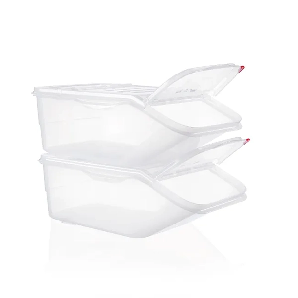 Il contenitore è progettato secondo il principio “First In, First Out”, grazie al doppio coperchio di carico e scarico, per una rotazione ordinata degli alimenti e una gestione efficiente del magazzino.